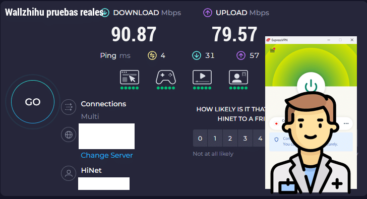 Evaluación de velocidad de ExpressVPN